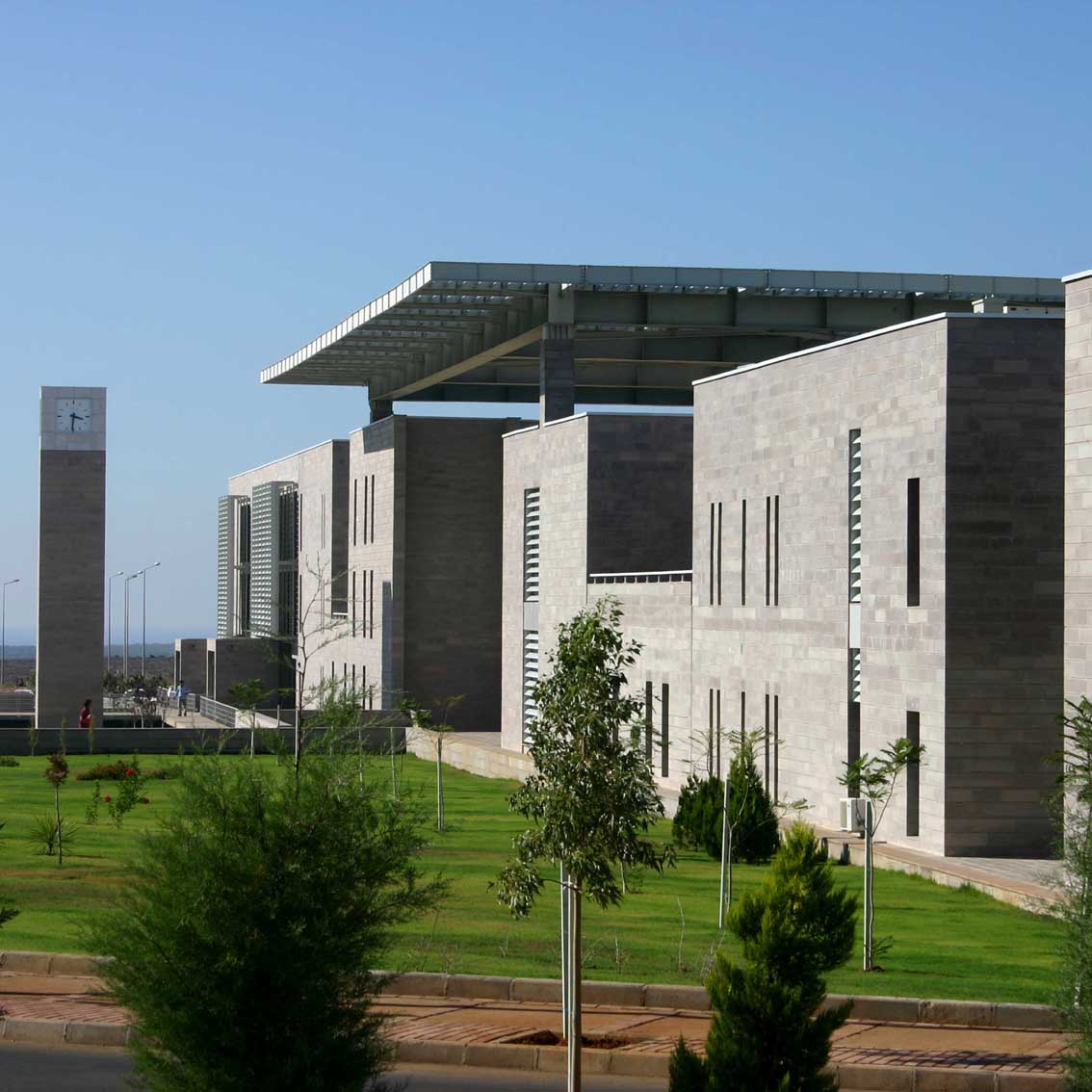 After completing the master plan for the new campus in Güzelyurt, a region of Northern Cyprus, the Department of Urban and Regional Planning at the Middle East Technical University (METU) Faculty of Architecture organized a single-stage, national architectural competition in 2003 to gather proposals for the administration, library, and information technology buildings. This complex, comprising the three main functions, was envisioned as the heart of the campus, attracting the most student and staff circulation. The location allocated for these buildings, overlooking the main square and the entire campus, also offered the prestige sought by the administration. The competition requirements included proposals for relatively low-rise buildings that were compatible with the warm climate, had minimal vertical circulation, and maximized outdoor space utilization. The long, very hot, and humid summer season forced competitors to design the most energy-efficient structures with the fewest construction and feasibility requirements. Relatively strong northerly winds were another major design input for the design teams. The proposals developed the idea of using wind as a fundamental design element.